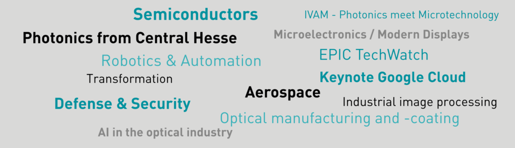 AI | Semiconductors | Laser Development | Industrial Image Processing with AI | Microtechnology | Purchasing with AI | Start-up Matching | Collaborative Robotics | TransMit Automotive | MedTech | Defense & Security | EPIC TechWatch | AI in Purchasing | IVAM Photonics meet Microtechnology | LifeScience – Opportunity for Central Hesse | Modern Optics Transformation and much more.