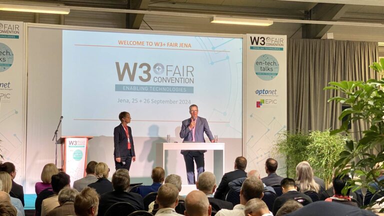 Unter dem Motto „Digitizing High-Tech-Industries“ bringt der de:hub Photonics & Digital Experience Platforms beim w3+ Forum Jena innovative Unternehmen und Forschungseinrichtungen des Thüringer Ökosystems auf die Bühne. In spannenden Kurzvorträgen zeigen die Referent:innen, wie digitale Technologien von KI über smarte Automatisierung bis hin zum digitalen Produktpass die Hightech-Industrien transformieren.